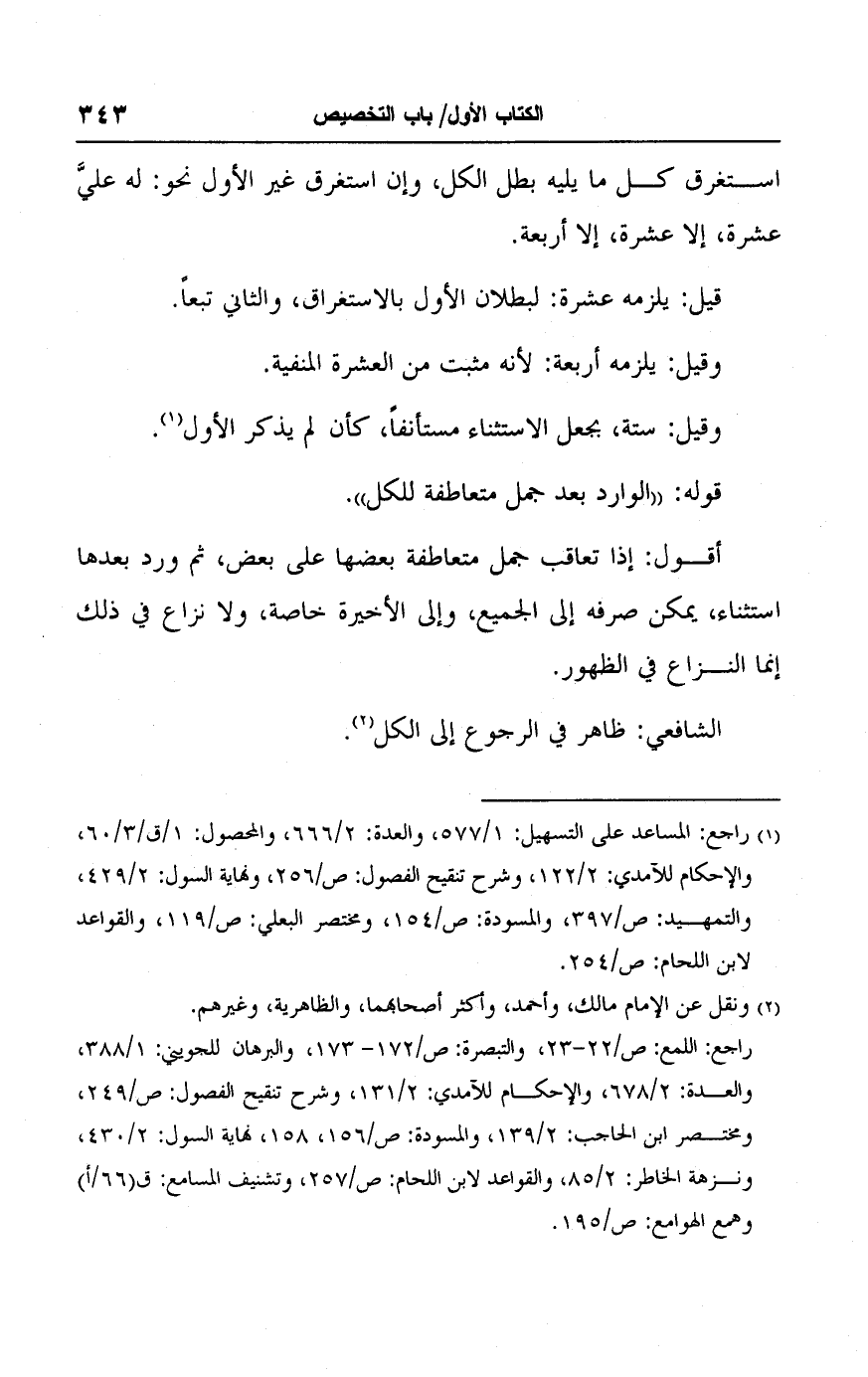 (١) راجع: المساعد على التسهيل: ١/ ٥٧٧، والعدة: ٢/ ٦٦٦، والمحصول: ١/ ق/ ٣/ ٦٠، والإحكام للآمدي: ٢/ ١٢٢، وشرح تنقيح الفصول: ص/ ٢٥٦، ونهاية السول: ٢/ ٤٢٩، والتمهيد: ص/ ٣٩٧، والمسودة: ص/ ١٥٤، ومختصر البعلي: ص/ ١١٩، والقواعد لابن اللحام: ص/ ٢٥٤.