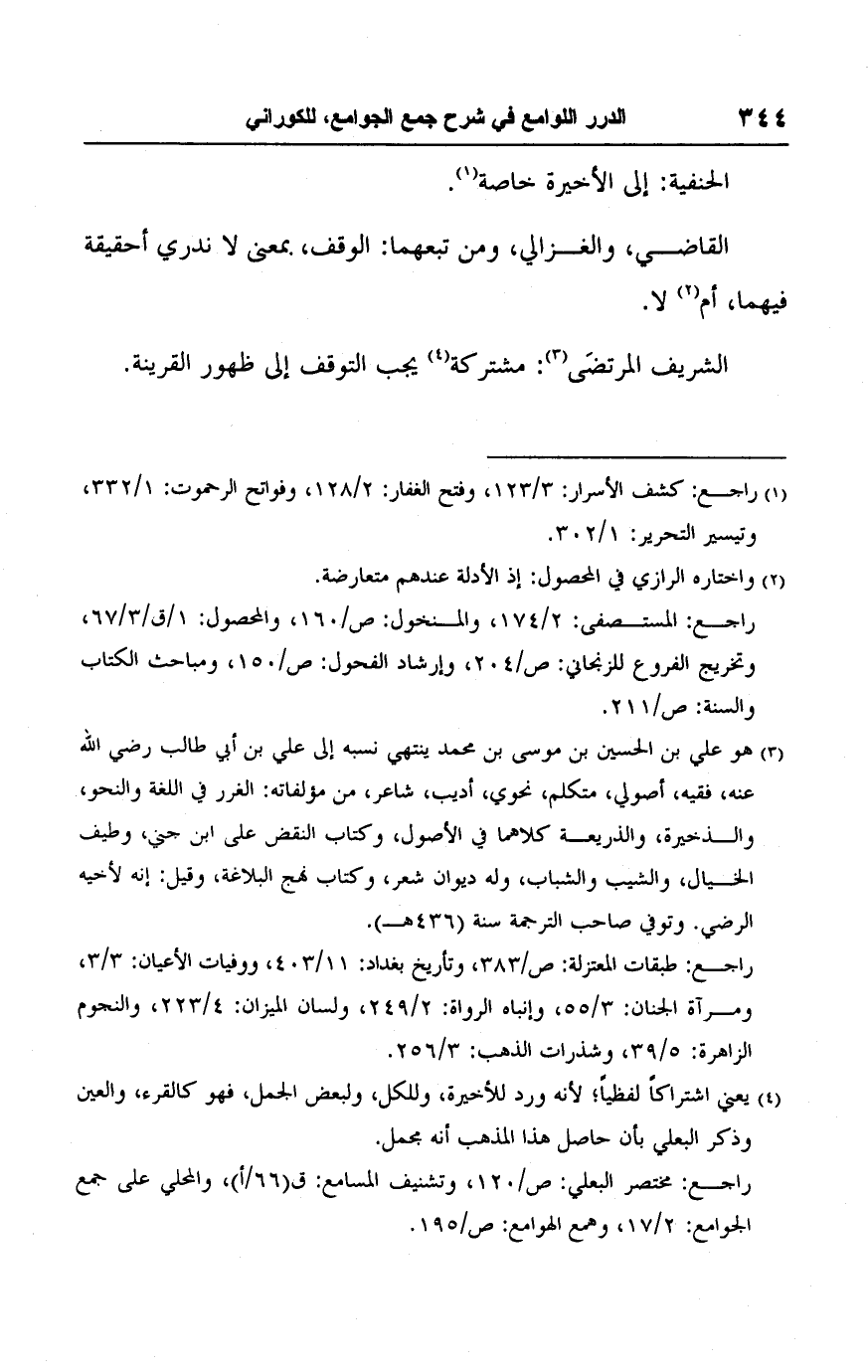 الشريف المرتضَى (٣): مشتركة (٤) يجب التوقف إلى ظهور القرينة.