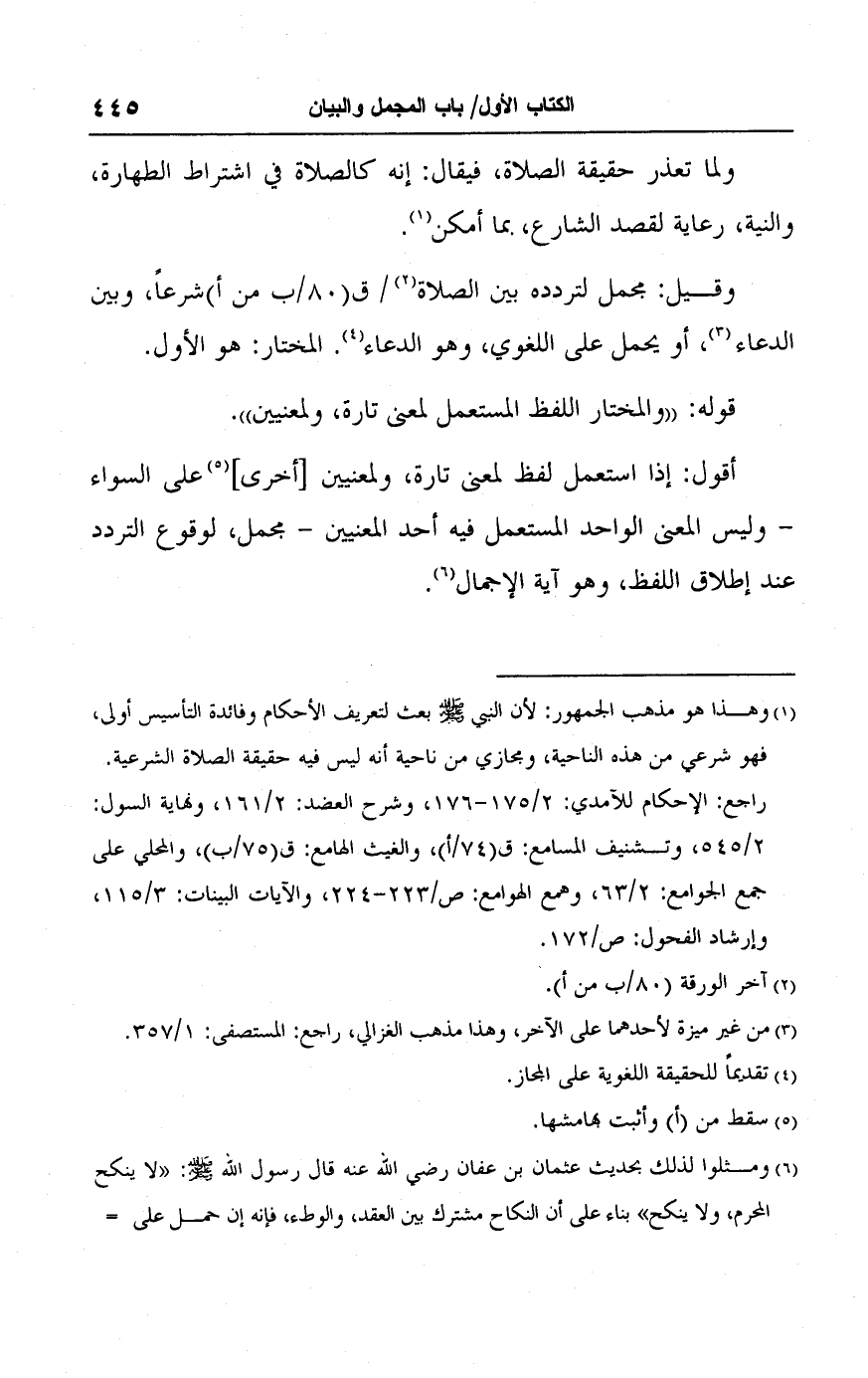 (١) وهذا هو مذهب الجمهور: لأن النبي - صلى الله عليه وسلم - بعث لتعريف الأحكام وفائدة التأسيس أولى، فهو شرعي من هذه الناحية، ومجازي من ناحية أنه ليس فيه حقيقة الصلاة الشرعية.