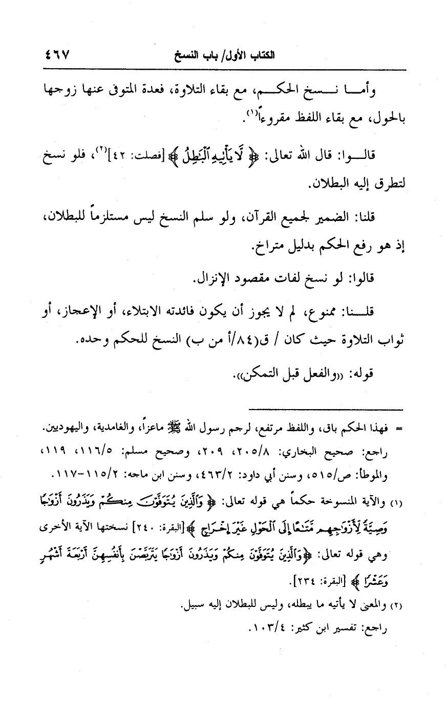 (١) والآية المنسوخة حكمًا هي قوله تعالى: {وَالَّذِينَ يُتَوَفَّوْنَ مِنْكُمْ وَيَذَرُونَ أَزْوَاجًا وَصِيَّةً لِأَزْوَاجِهِمْ مَتَاعًا إِلَى الْحَوْلِ غَيْرَ إِخْرَاجٍ} [البقرة: ٢٤٠] نسختها الآية الأخرى وهي قوله تعالى: {وَالَّذِينَ يُتَوَفَّوْنَ مِنْكُمْ وَيَذَرُونَ أَزْوَاجًا يَتَرَبَّصْنَ بِأَنْفُسِهِنَّ أَرْبَعَةَ أَشْهُرٍ وَعَشْرًا} [البقرة: ٢٣٤].