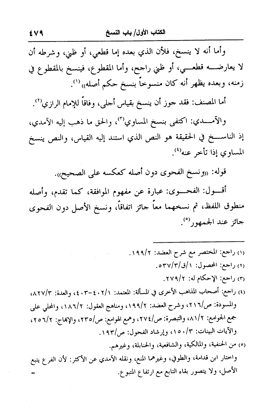 والآمدي: اكتفى بنسخ المساوي (٣)، والحق ما ذهب إليه الآمدي، إذ الناسخ في الحقيقة هو النص الذي استند إليه القياس، والنص ينسخ المساوي إذا تأخر عنه (٤).