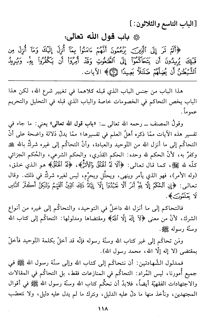 هذا الباب من جنس الباب الذي قبله كلاهما في تغيير شرع الله، لكن هذا الباب يخص التحاكم في الخصومات خاصة والباب الذي قبله في التحليل والتحريم عموماً.