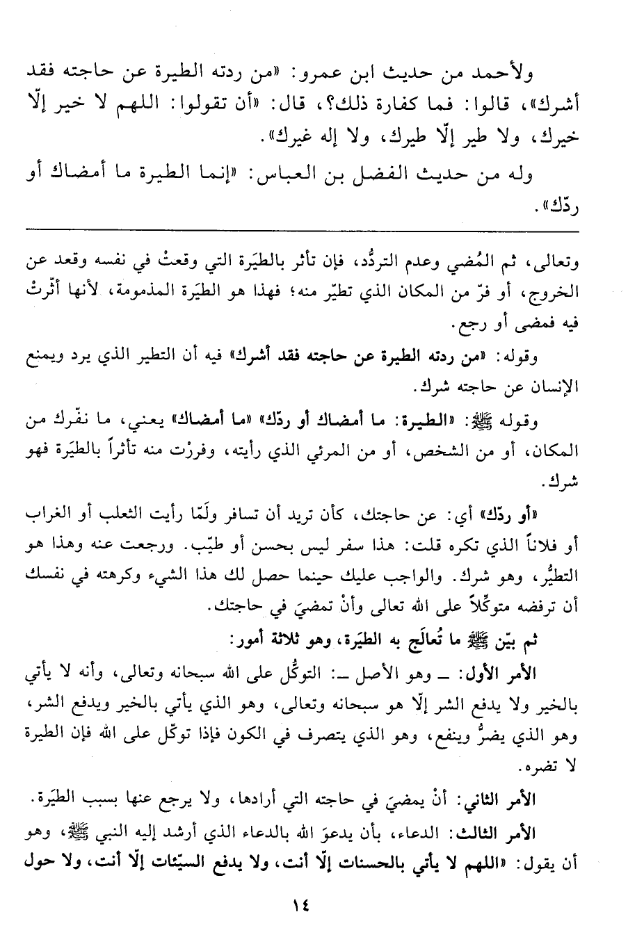 الأمر الثاني: أنْ يمضيَ في حاجته التي أرادها، ولا يرجع عنها بسبب الطيَرة.