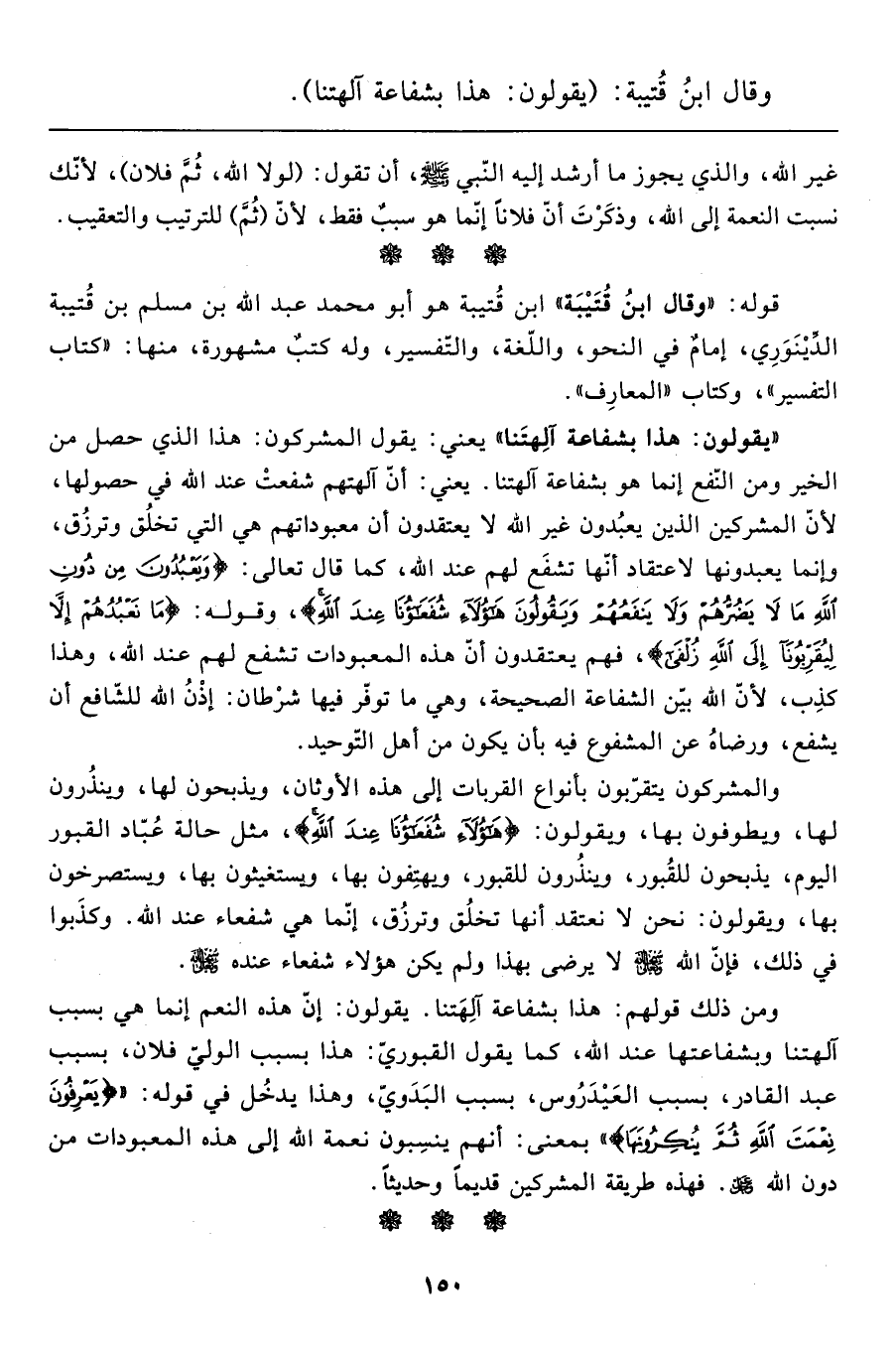 والمشركون يتقرّبون بأنواع القربات إلى هذه الأوثان، ويذبحون لها، وينذُرون لها، ويطوفون بها، ويقولون: {هَؤُلاءِ شُفَعَاؤُنَا عِنْدَ اللهِ} ، مثل حالة عُبّاد القبور اليوم، يذبحون للقُبور، وينذُرون للقبور، ويهتِفون بها، ويستغيثون بها، ويستصرخون بها، ويقولون: نحن لا نعتقد أنها تخلُق وترزُق، إنما هي شفعاء عند الله. وكذَبوا في ذلك، فإنّ الله سبحانه وتعالى لا يرضى بهذا ولم يكن هؤلاء شفعاء عنده سبحانه وتعالى.