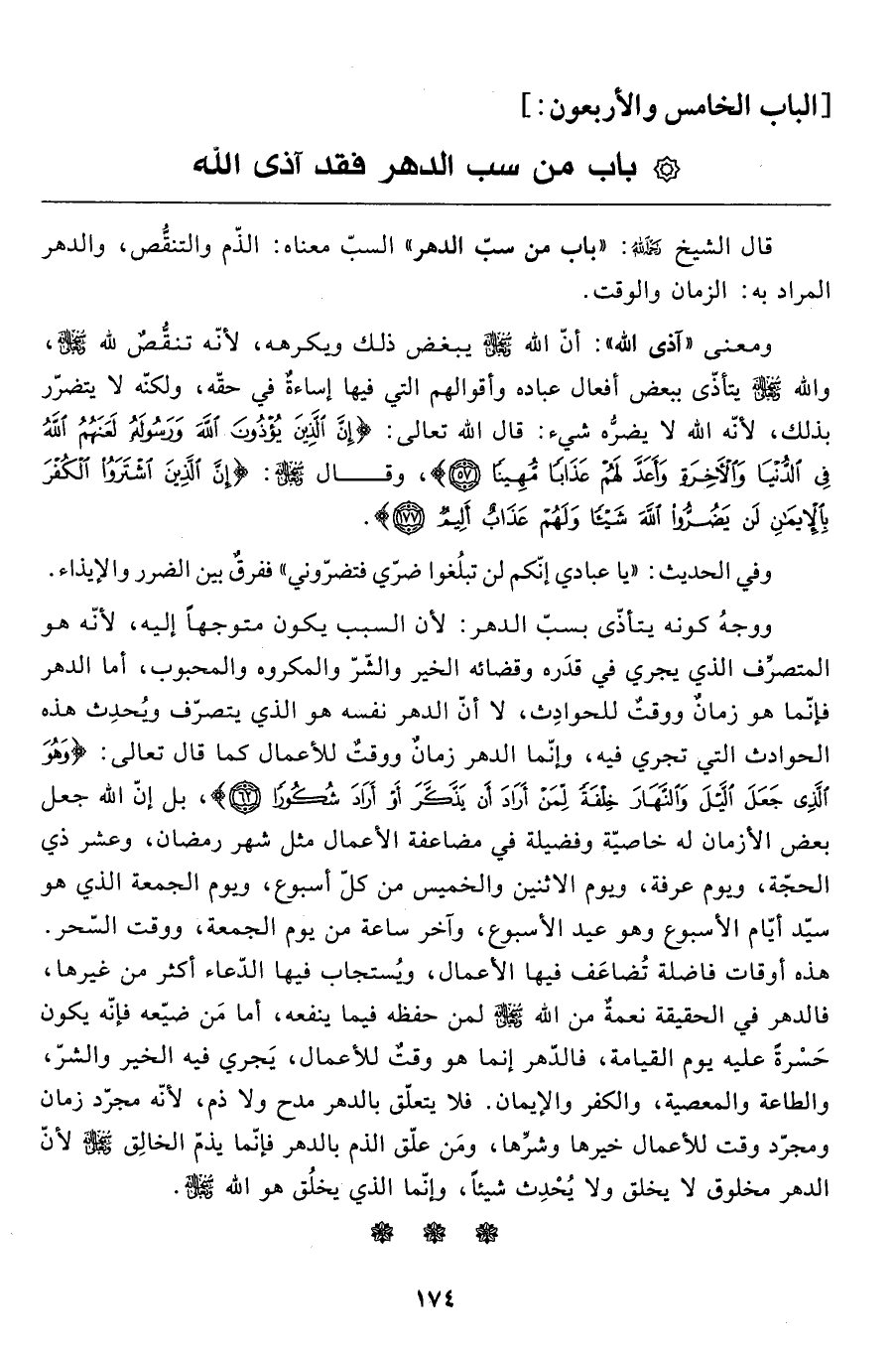 قال الشيخ رحمه الله: "باب من سبّ الدهر" السبّ معناه: الذّم والتنقُّص، والدهر المراد به: الزمان والوقت.