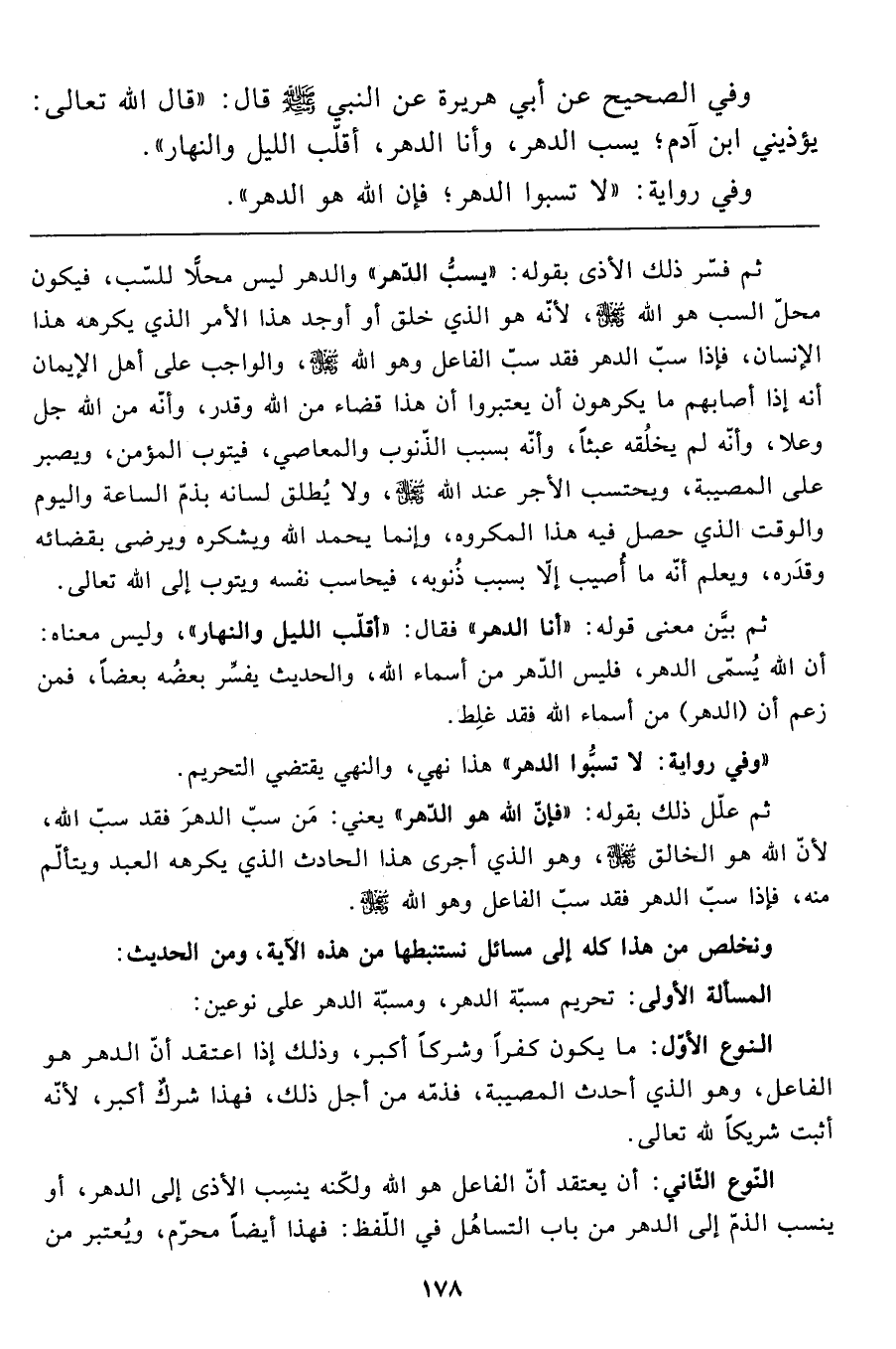 المسألة الأولى: تحريم مسبّة الدهر، ومسبّة الدهر على نوعين: