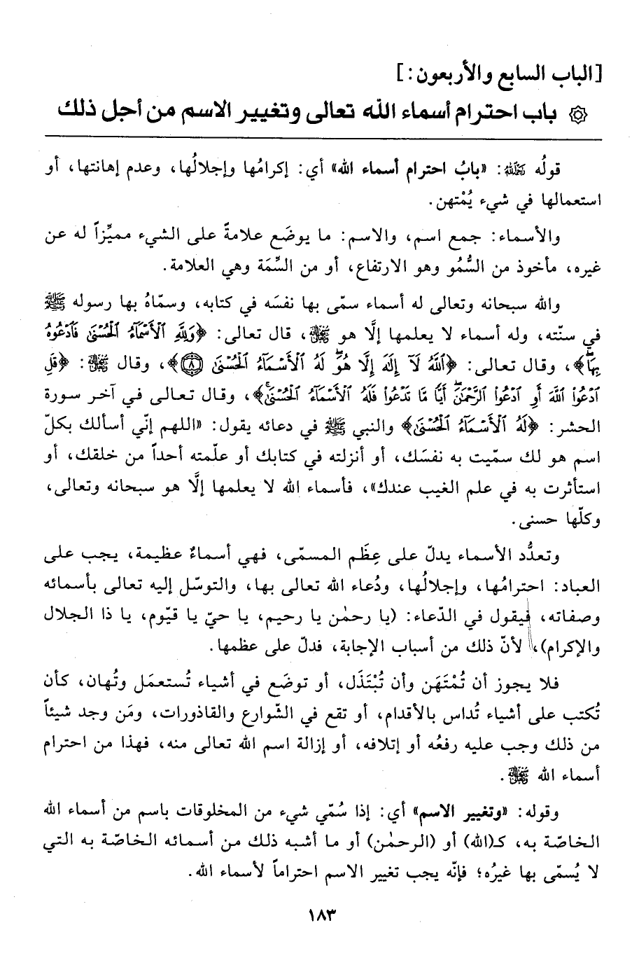 * باب احترام أسماء الله تعالى وتغيير الاسم من أجل ذلك