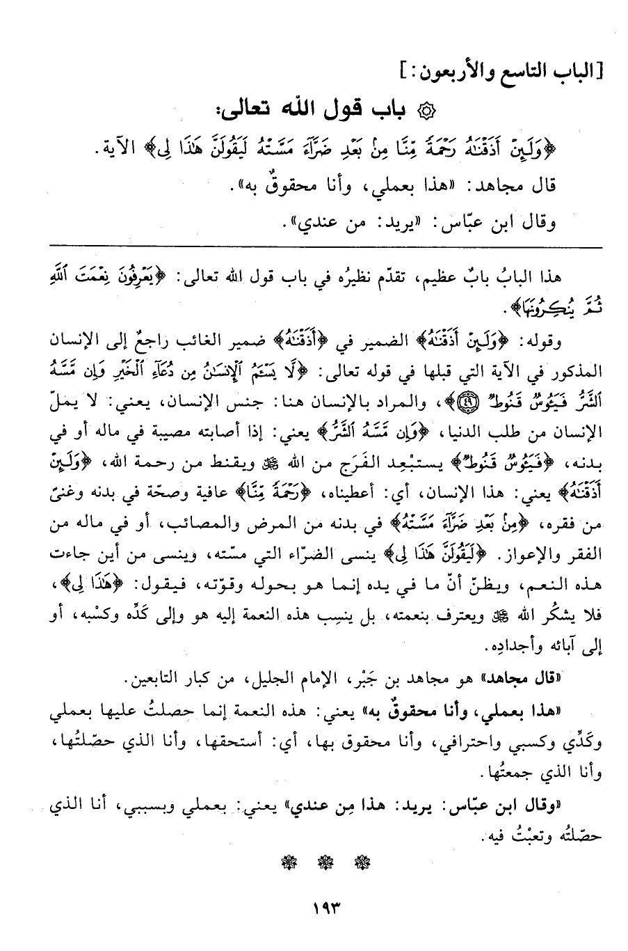 هذا الباب بابٌ عظيم، تقدّم نظيره في باب قول الله تعالى: {يَعْرِفُونَ نِعْمَتَ اللهِ ثُمَّ يُنْكِرُونَهَا} .