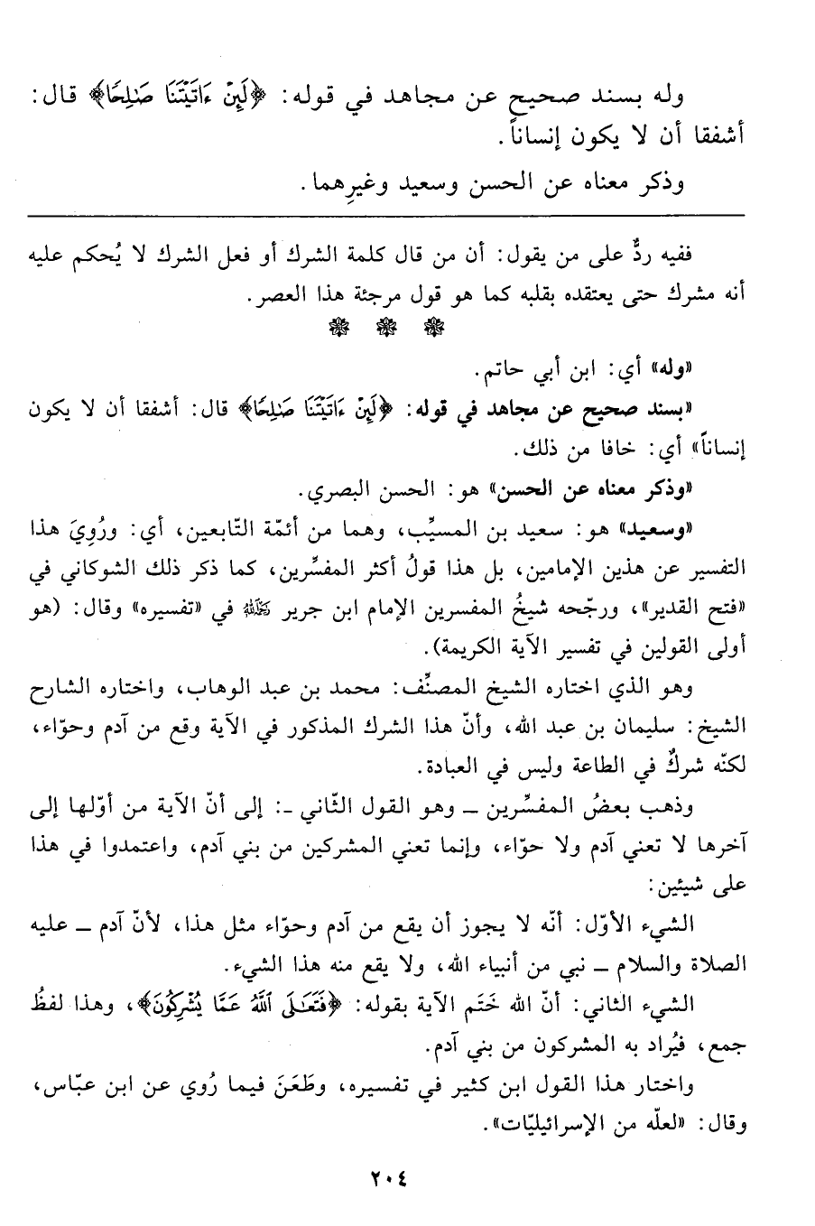 وله بسند صحيح عن مجاهد في قوله: {لَئِنْ آتَيْتَنَا صَالِحاً} قال: أشفقا أن لا يكون إنساناً.