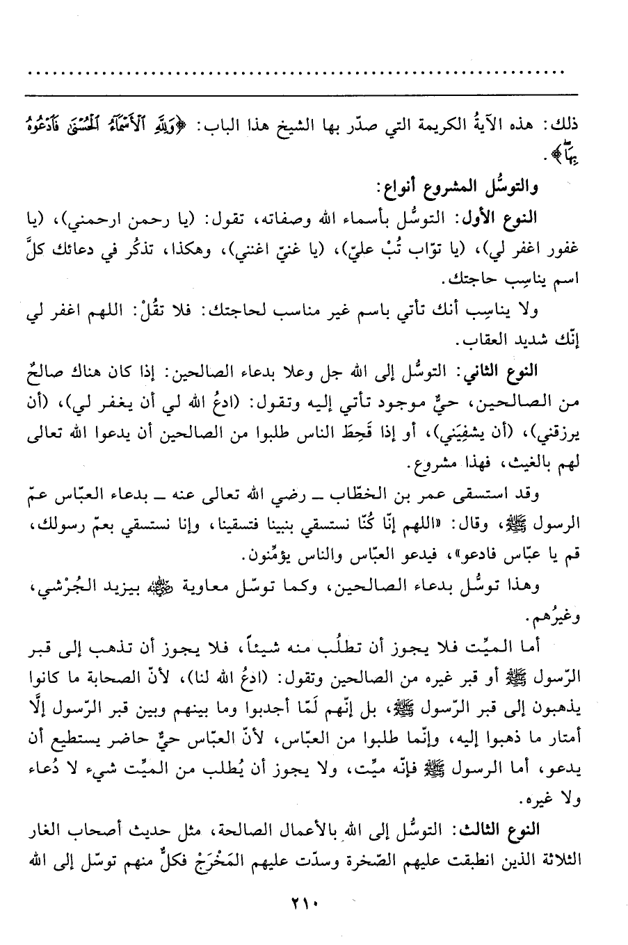 ذلك: هذه الآيةُ الكريمة التي صدّر بها الشيخ هذا الباب: {وَلِلَّهِ الْأَسْمَاءُ الْحُسْنَى فَادْعُوهُ بِهَا} .