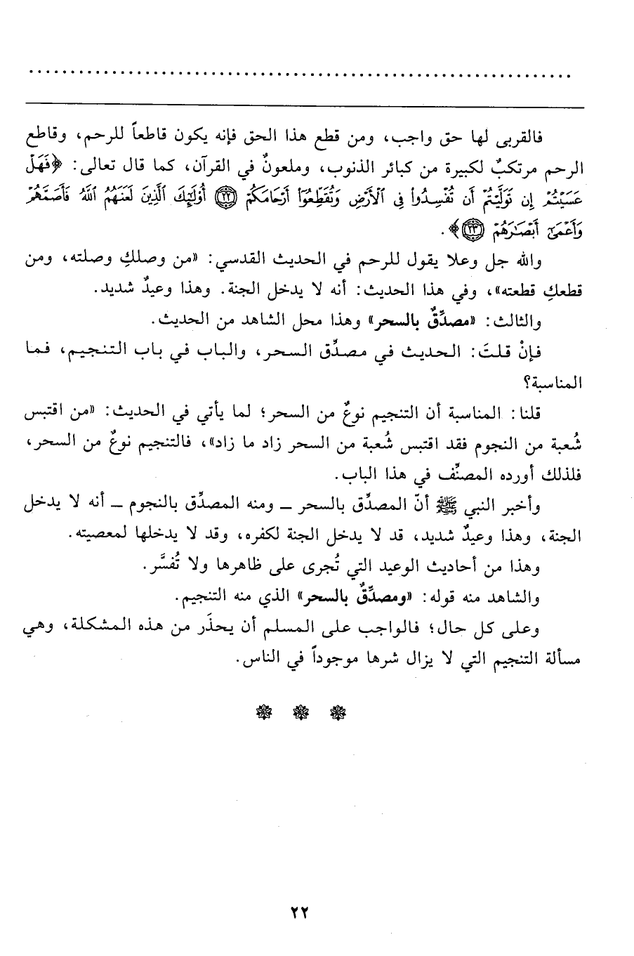 والشاهد منه قوله: "مصدِّقٌ بالسحر" الذي منه التنجيم.