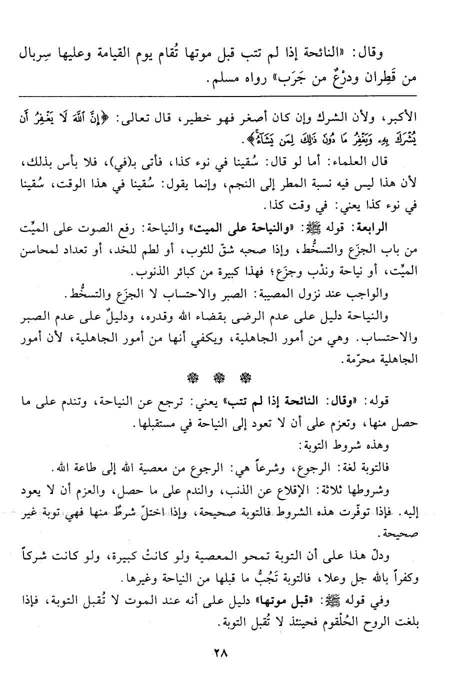 ودلّ هذا على أن التوبة تمحو المعصية ولو كانتْ كبيرة، ولو كانت شركاً وكفراً بالله جل وعلا، فالتوبة تَجُبُّ ما قبلها من النياحة وغيرها.