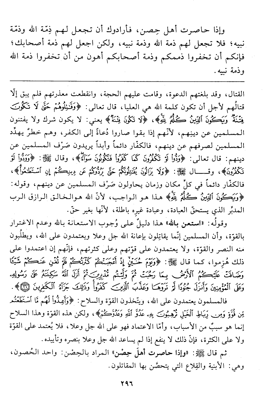القتال، وقد بلغتهم الدعوة، وقامت عليهم الحجة، وانقطعت معذرتهم فلم يبق إلاّ قتالُهم لأجل أن تكون كلمة الله هي العليا، قال تعالى: {وَقَاتِلُوهُمْ حَتَّى لا تَكُونَ فِتْنَةٌ وَيَكُونَ الدِّينُ كُلُّهُ لِلَّهِ} ، {لا تَكُونَ فِتْنَةٌ} يعني: لا يكون شرك ولا يفتنون المسلمين عن دينِهم، لأنّهم إذا بقوا صاروا دُعاة إلى الكفر، وهم خطرٌ يهدِّد المسلمين لصرفهم عن دينهم، فالكفّار دائماً وأبداً يريدون صَرّْف المسلمين عن دينهم: قال تعالى: {وَدُّوا لَوْ تَكْفُرُونَ كَمَا كَفَرُوا فَتَكُونُونَ سَوَاءً} ، وقال سبحانه وتعالى: {وَوَدُّوا لَوْ تَكْفُرُونَ} ، وقال سبحانه وتعالى: {وَلا يَزَالُونَ يُقَاتِلُونَكُمْ حَتَّى يَرُدُّوكُمْ عَنْ دِينِكُمْ إِنِ اسْتَطَاعُوا} ، فالكفّار دائماً في كلِّ مكان وزمان يحاولون صرف المسلمين عن دينهم، وقوله: {وَيَكُونَ الدِّينُ كُلُّهُ لِلَّهِ} هذا هو الواجب، لأنّ الله هو الخالق الرازق الرب المدبِّر الذي يستحقّ العبادة، وعبادة غيرِه باطلة، لأنّها بغير حقّ.