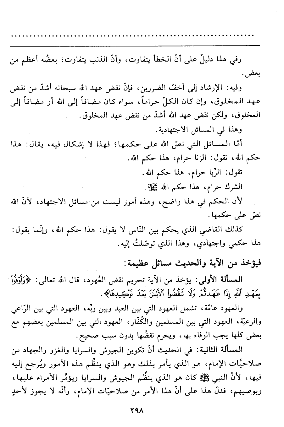 وفيه: الإرشاد إلى أخفّ الضررين، فإنّ نقض عهد الله سبحانه أشدّ من نقض عهد المخلوق، وإن كان الكلّ حراماً، سواء كان مضافاً إلى الله أو مضافاً إلى المخلوق، ولكن نقض عهد الله أشدّ من نقض عهد المخلوق.