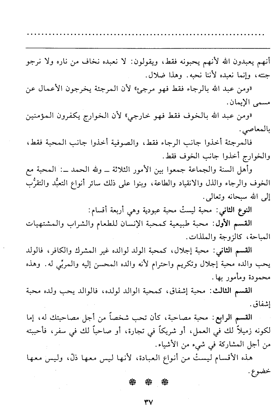 النوع الثاني: محبة ليستْ محبة عبودية وهي أربعة أقسام: