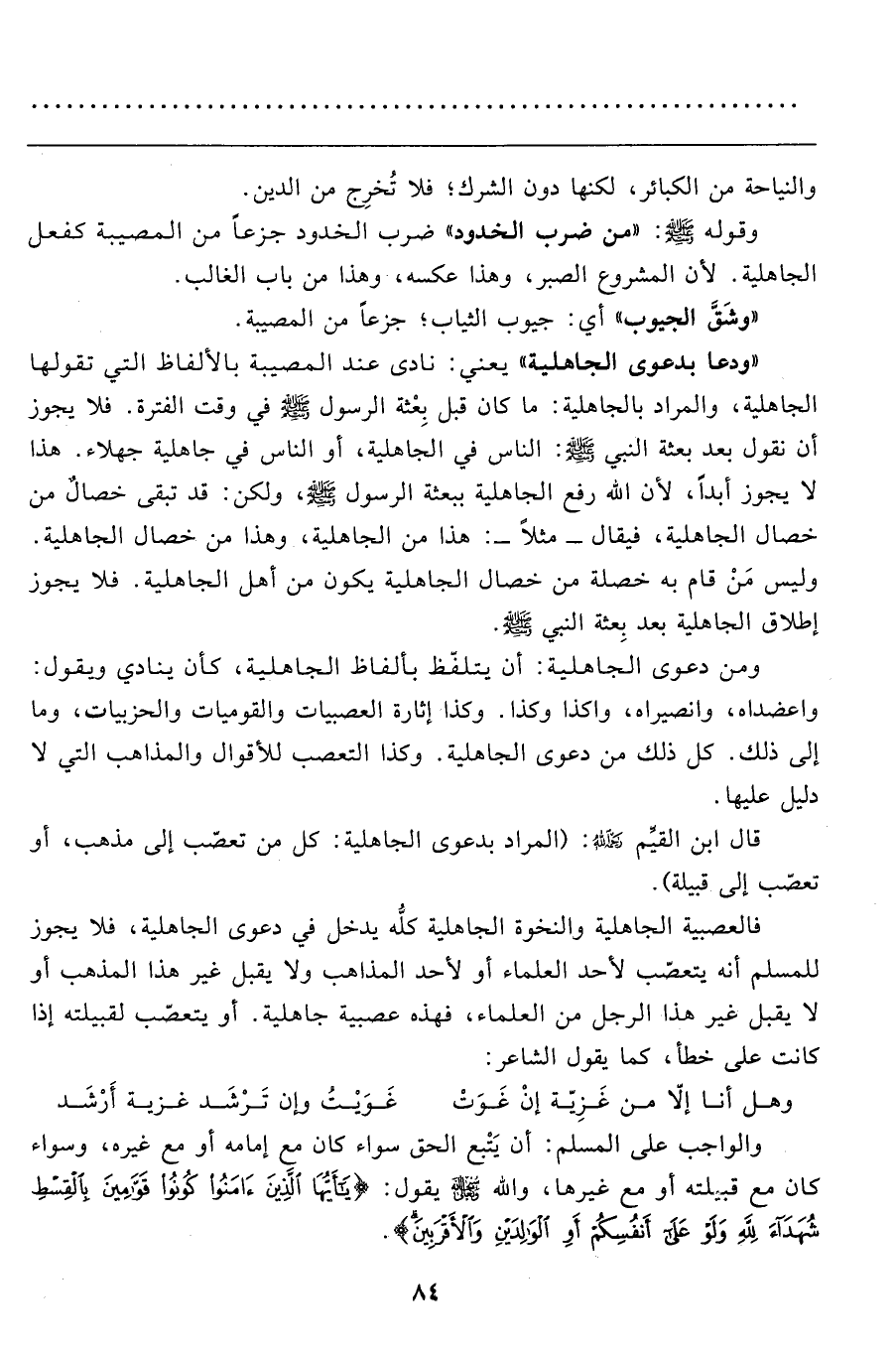 قال ابن القيِّم رحمه الله: "المراد بدعوى الجاهلية: كل من تعصّب إلى مذهب، أو تعصّب إلى قبيلة".