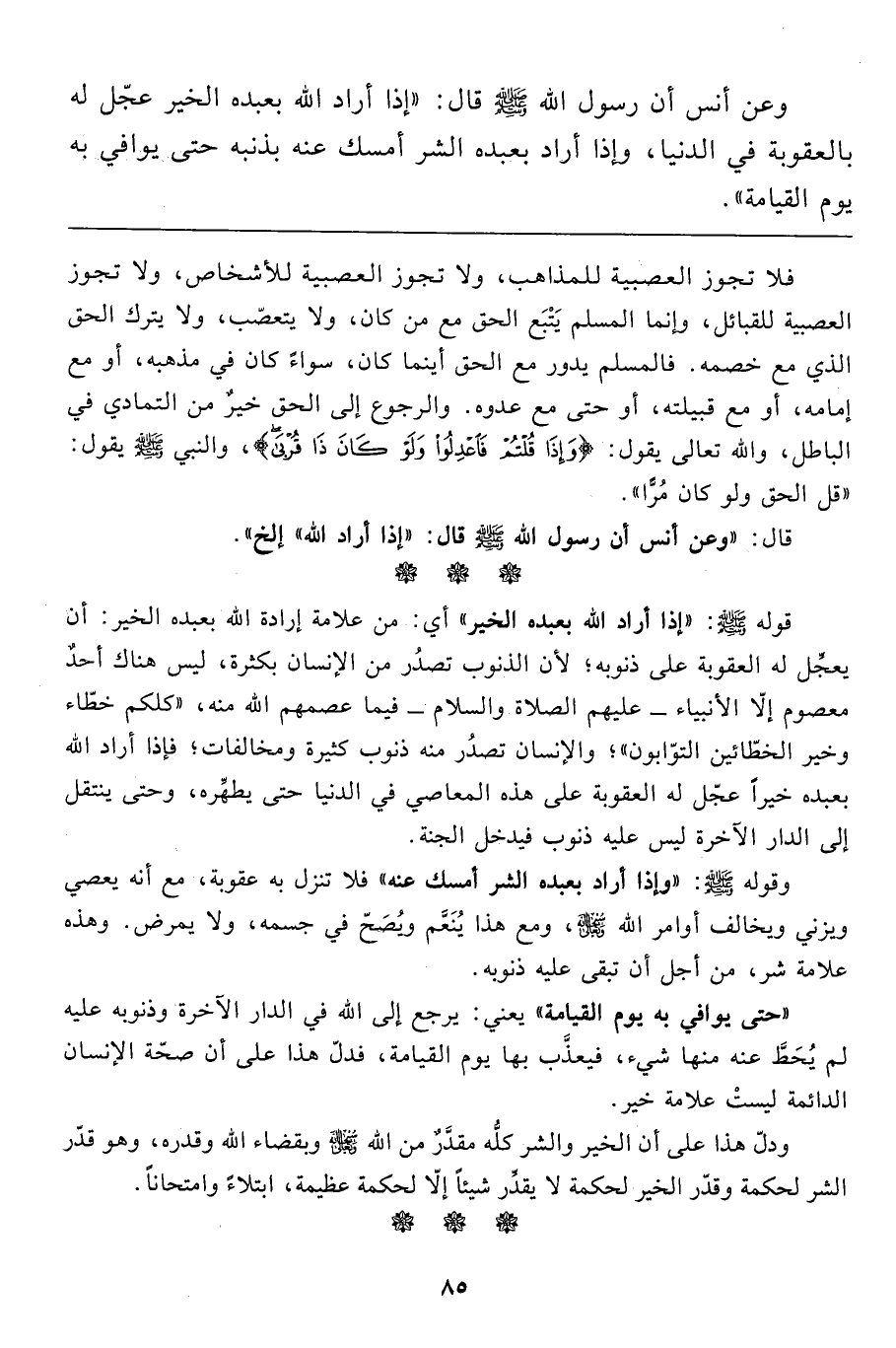 قال: "وعن أنس أن رسول الله صَلَّى اللَّهُ عَلَيْهِ وَسَلَّمَ قال: "إذا أراد الله" إلخ".
