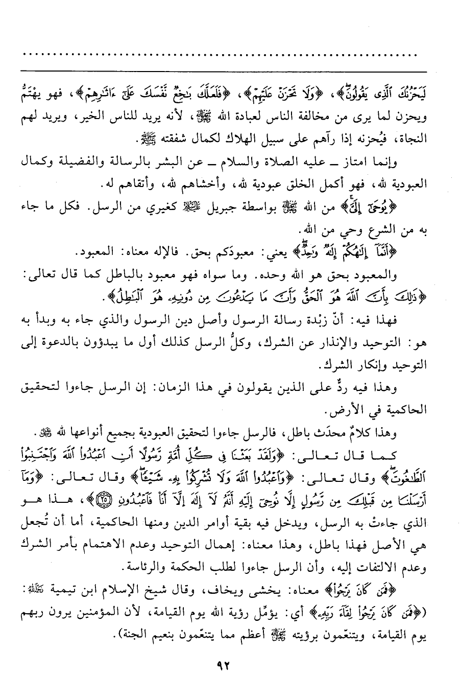 لَيَحْزُنُكَ الَّذِي يَقُولُونَ} ، {وَلا تَحْزَنْ عَلَيْهِمْ} ، {فَلَعَلَّكَ بَاخِعٌ نَفْسَكَ عَلَى آثَارِهِمْ} ، فهو يهْتَمُّ ويحزن لما يرى من مخالفة النّاس لعبادة الله سبحانه وتعالى، لأنه يريد للناس الخير، ويريد لهم النجاة، فيُحزنه إذا رآهم على سبيل الهلاك لكمال شفقته صَلَّى اللَّهُ عَلَيْهِ وَسَلَّمَ.