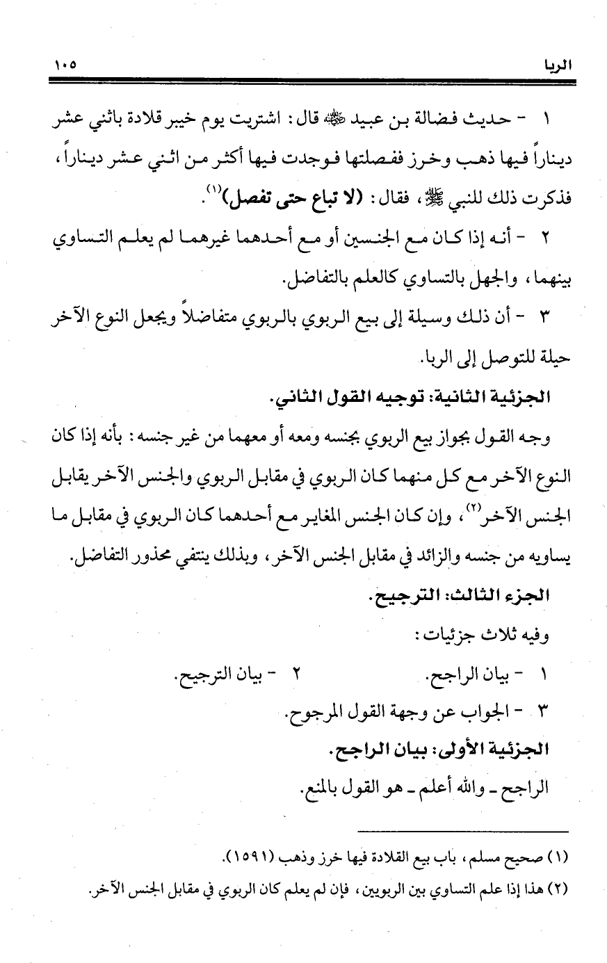 (¬1) صحيح مسلم، باب بيع الزيادة فيها خرز وذهب (1591).