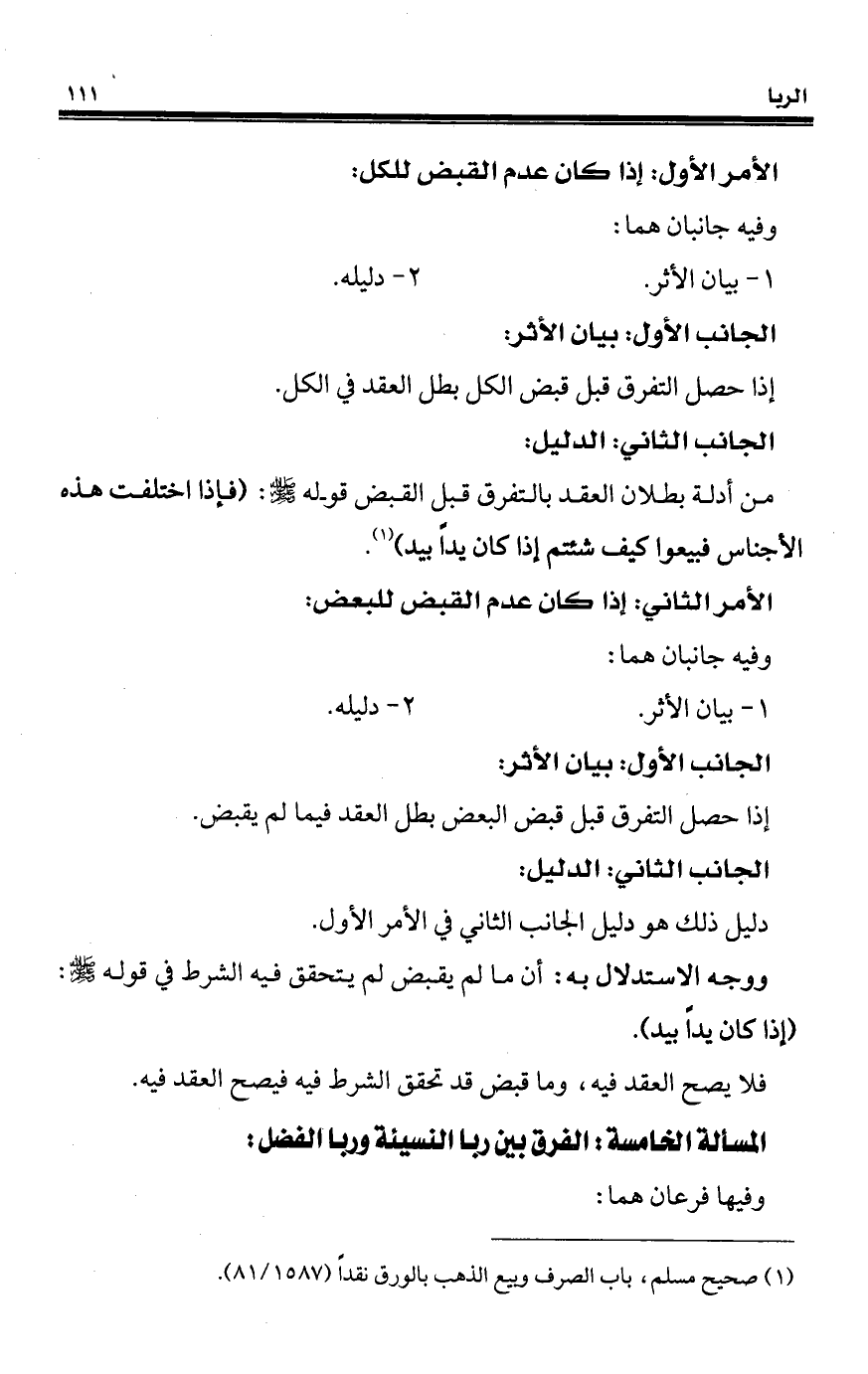 (¬1) صحيح مسلم، باب الصرف ويبع الذهب بالورق نقدًا (1587/ 81).