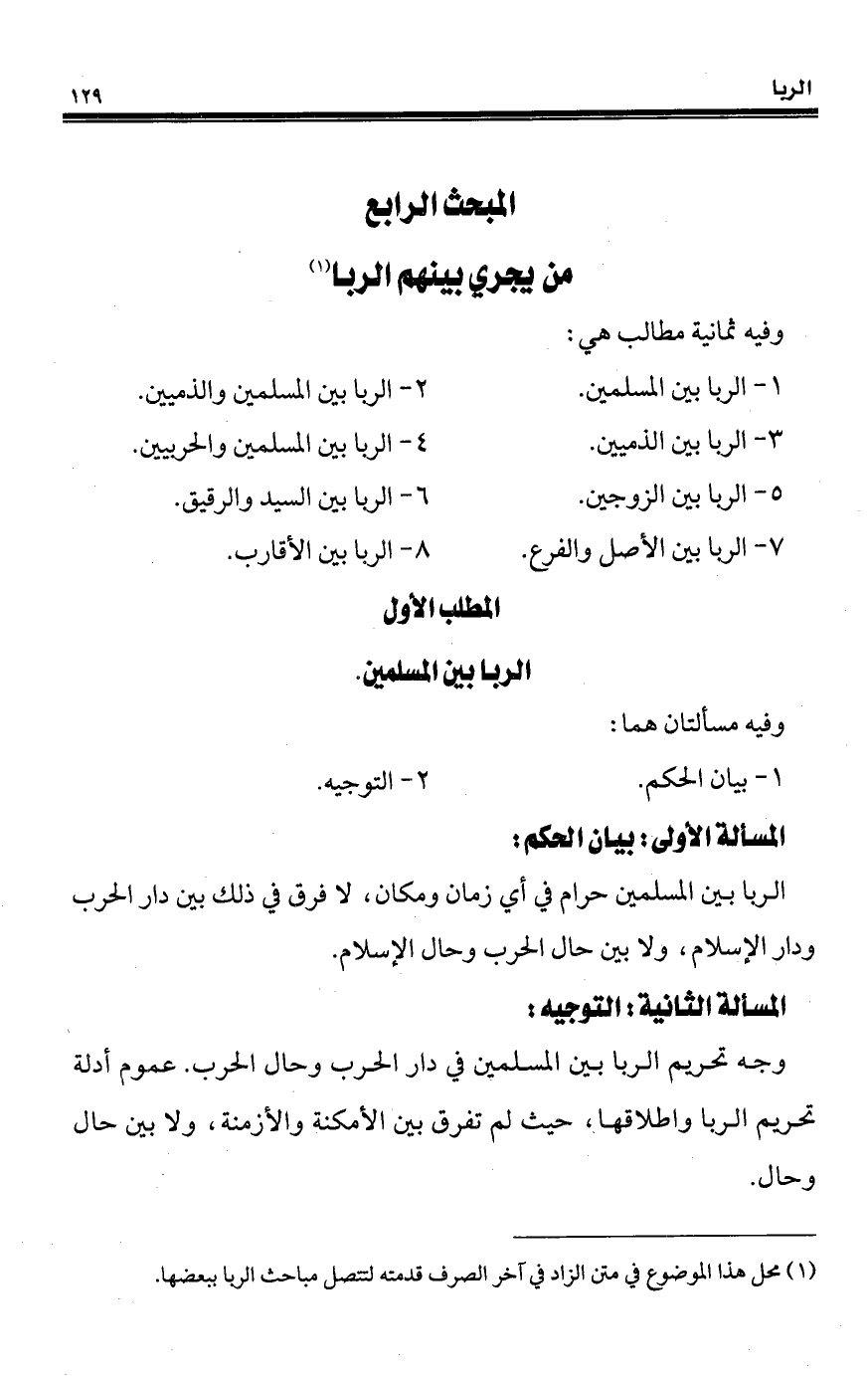 المبحث الرابع من يجري بينهم الربا (¬1)