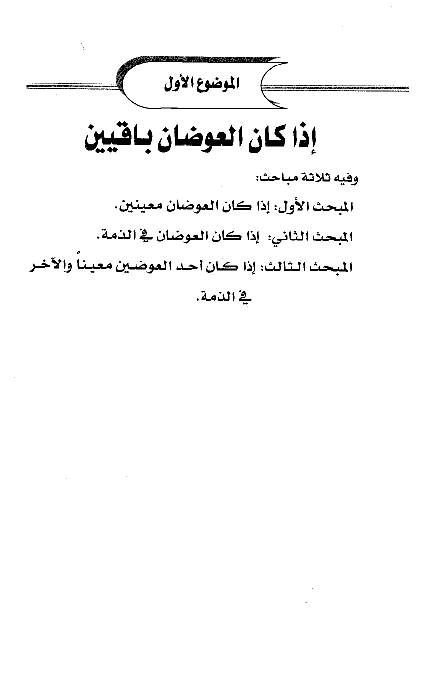 المبحث الثالث: إذا كان أحد العوضين معينًا والآخر في الذمة.