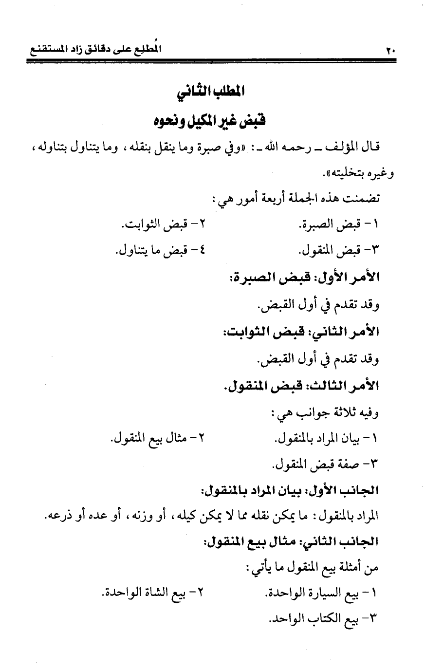المطلب الثاني (*) قبض غير المكيل ونحوه