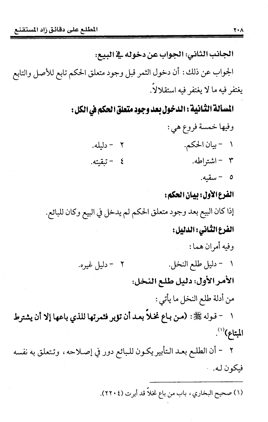 2 - أن الطلع بعد التأبير يكون للبائع دور في إصلاحه، وتتعلق به نفسه فيكون له.