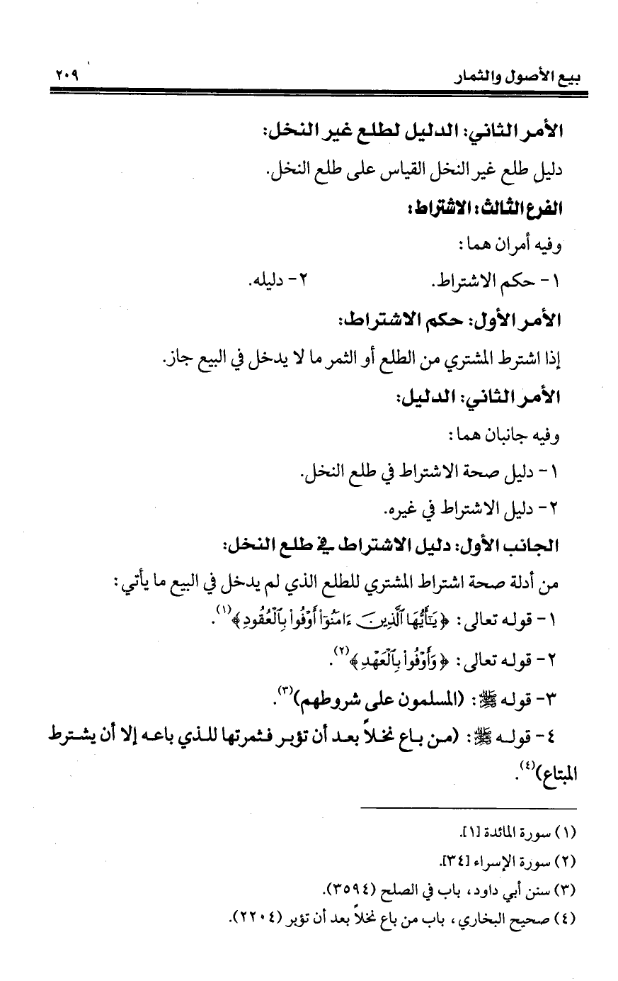 من أدلة صحة اشتراط المشتري للطلع الذي لم يدخل في البيع ما يأتي:
