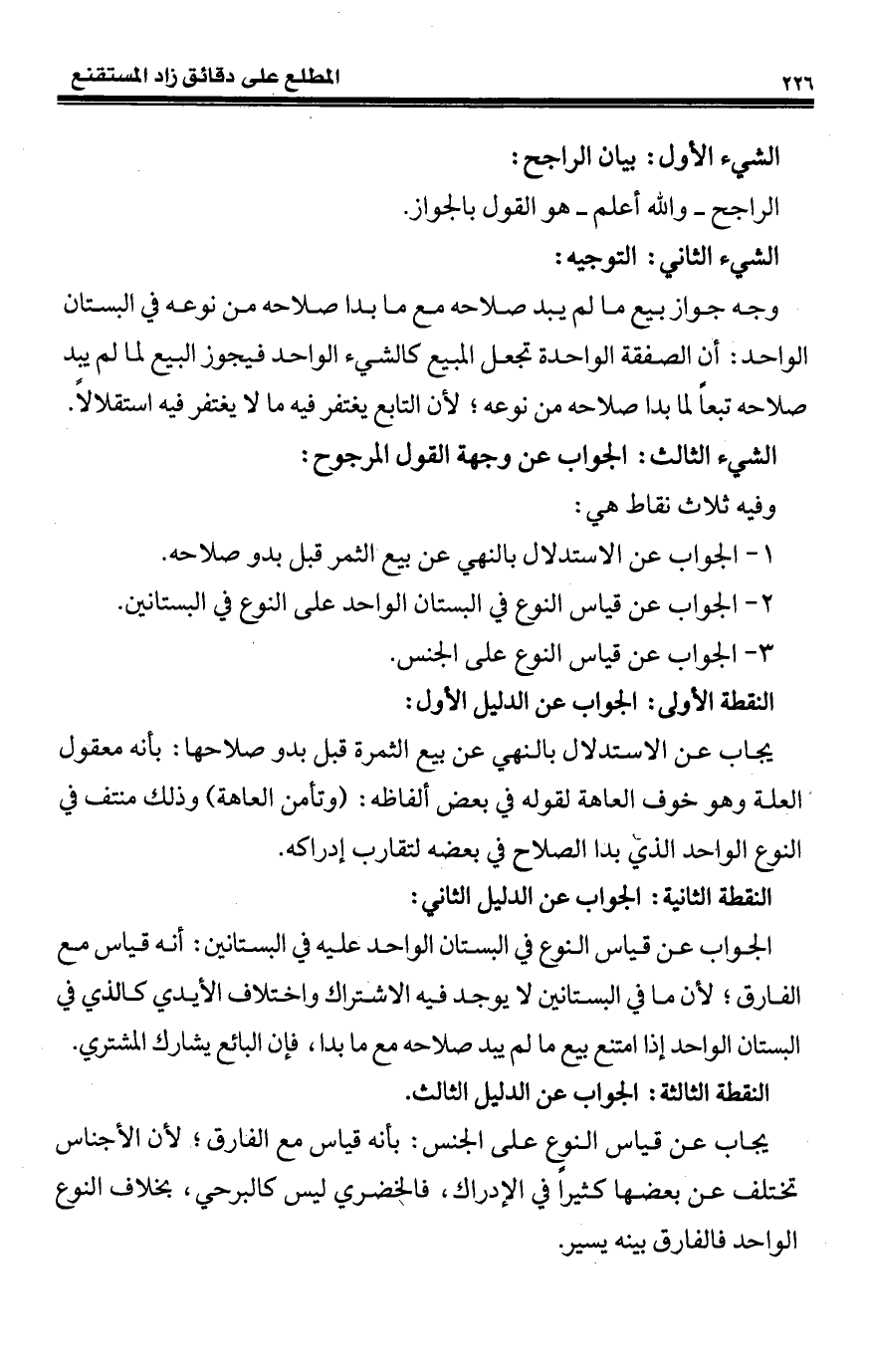2 - الجواب عن قياس النوع في البستان الواحد على النوع في البستانين.