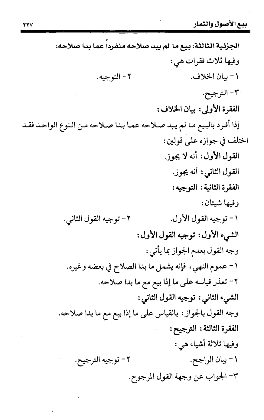 2 - تعذر قياسه على ما إذا بيع مع ما بدا صلاحه.