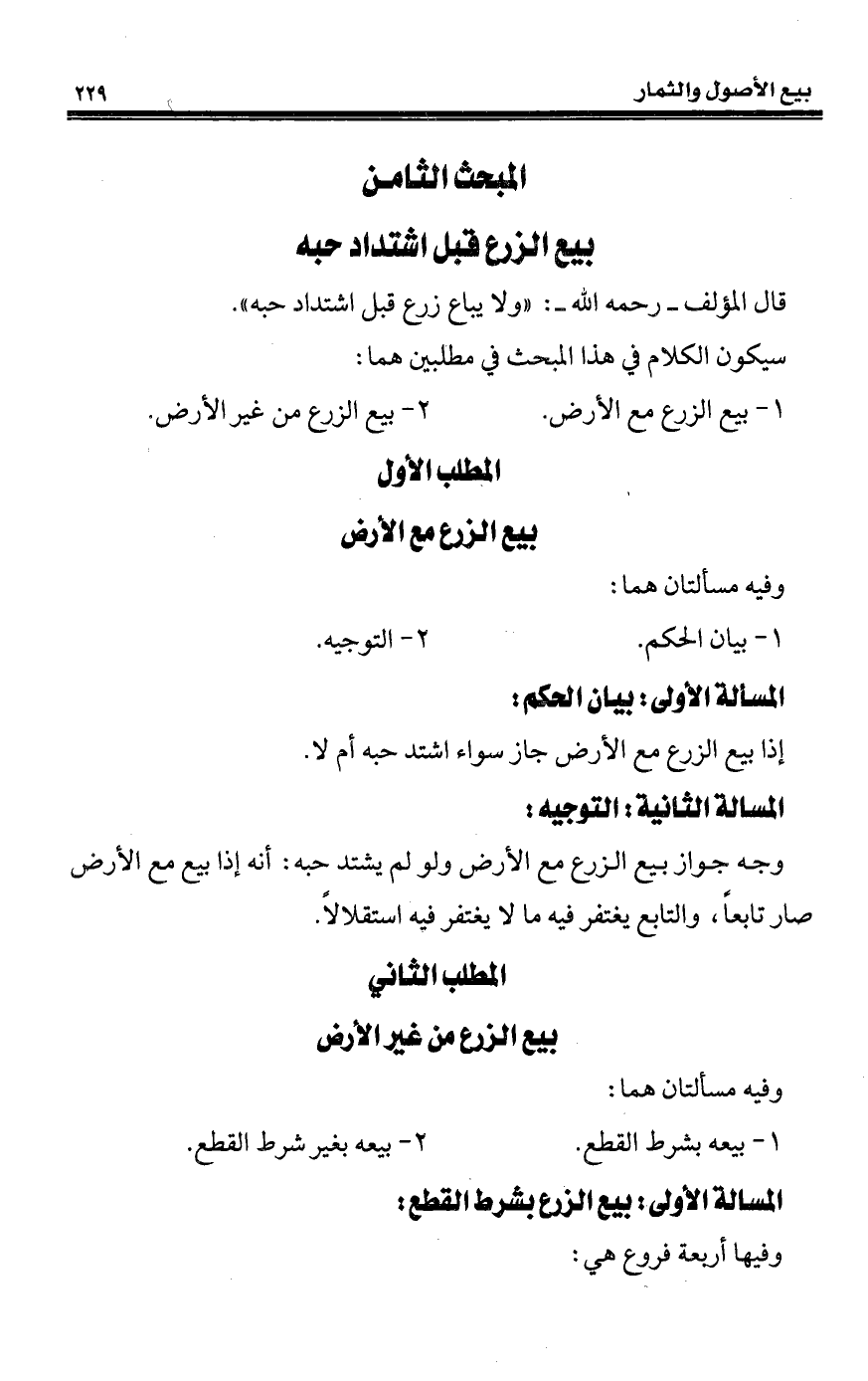 المبحث الثامن بيع الزرع قبل اشتداد حبه