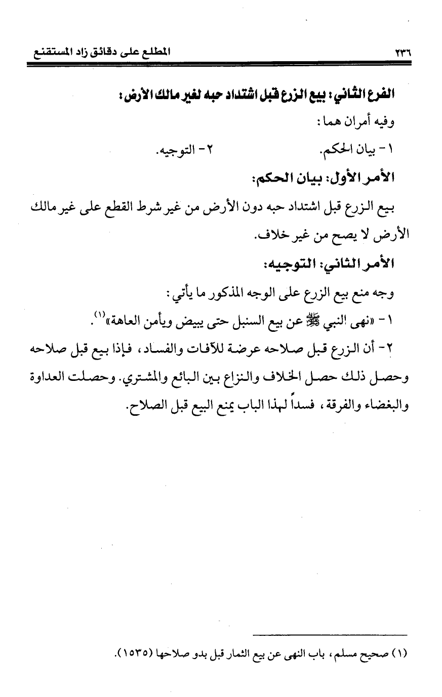كتاب المطلع على دقائق زاد المستقنع «المعاملات المالية» (اسم الجزء: 2)