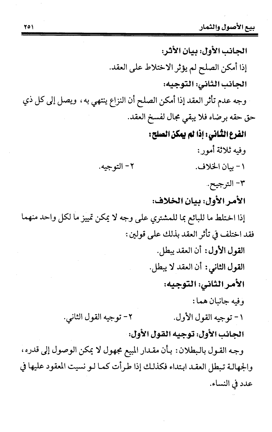 إذا اختلط ما للبائع بما للمشتري على وجه لا يمكن تمييز ما لكل واحد منهما فقد اختلف في تأثر العقد بذلك على قولين: