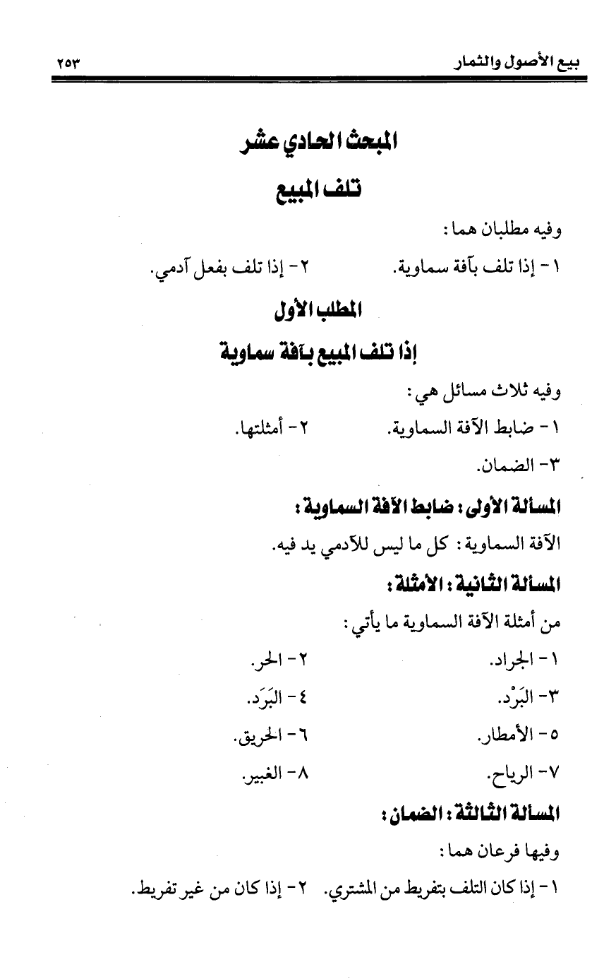 المطلب الأول إذا تلف المبيع بآفة سماوية