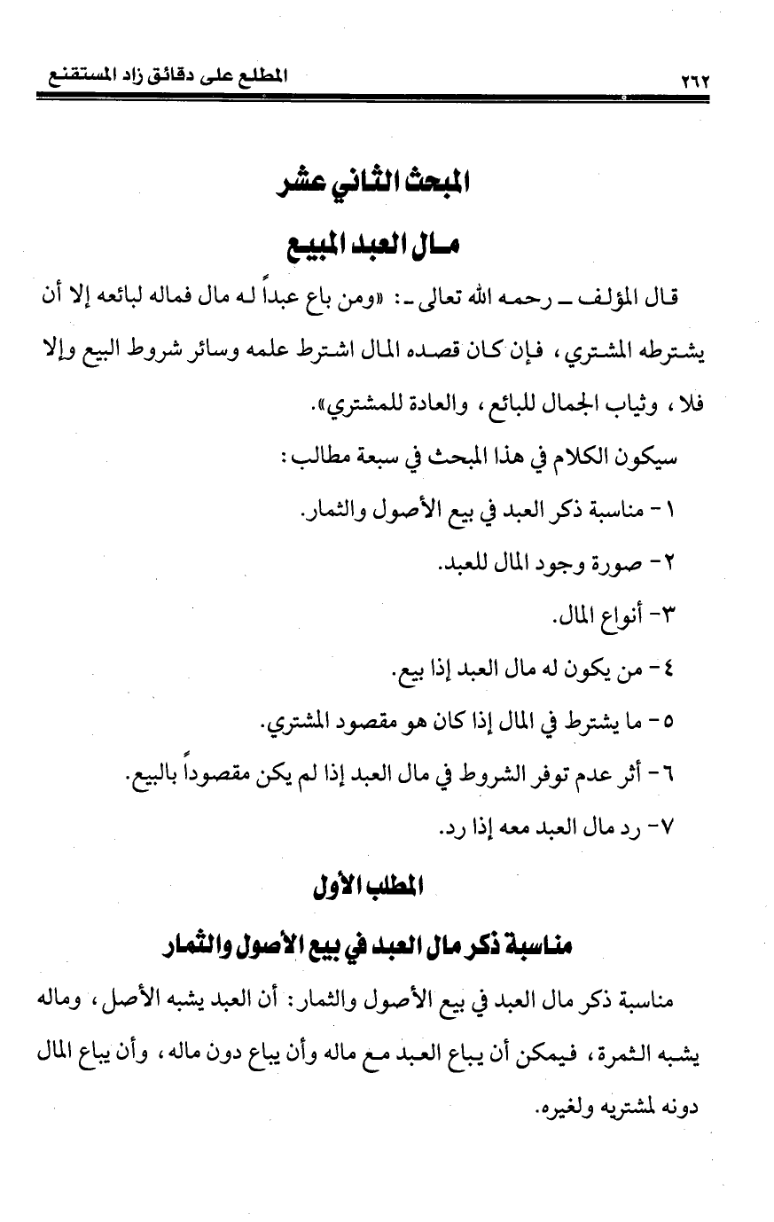 المبحث الثاني عشر مال العبد المبيع