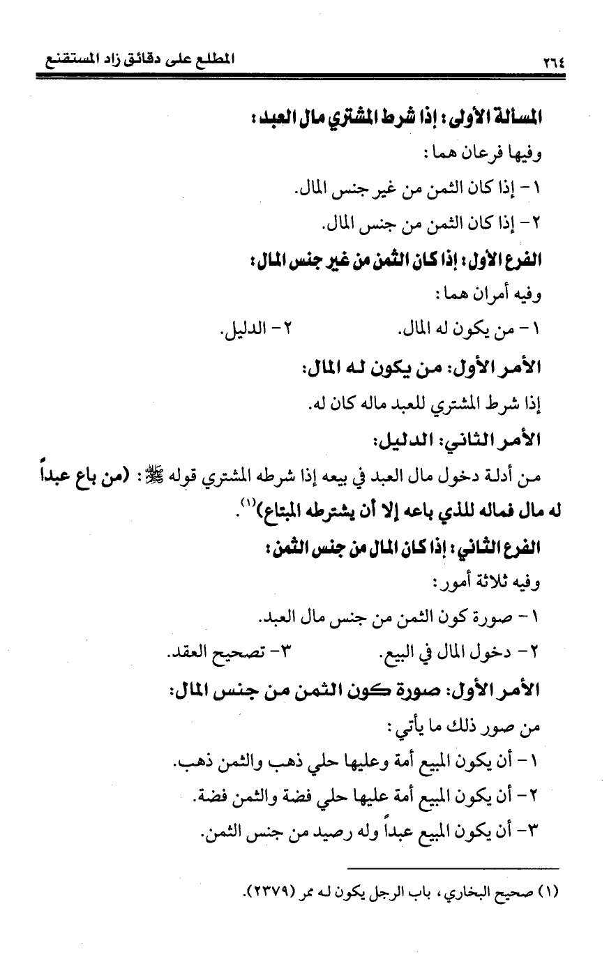 من أدلة دخول مال العبد في بيعه إذا شرطه المشتري قوله - صلى الله عليه وسلم -: (من باع عبدًا له مال فماله للذي باعه إلا أن يشترطه المبتاع) (¬1).