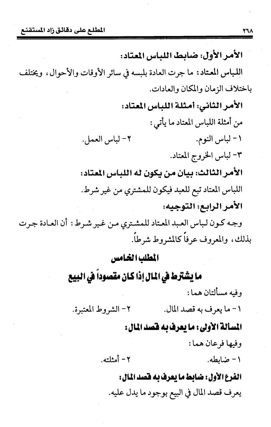 المطلب الخامس ما يشترط في المال إذا كان مقصودًا في البيع
