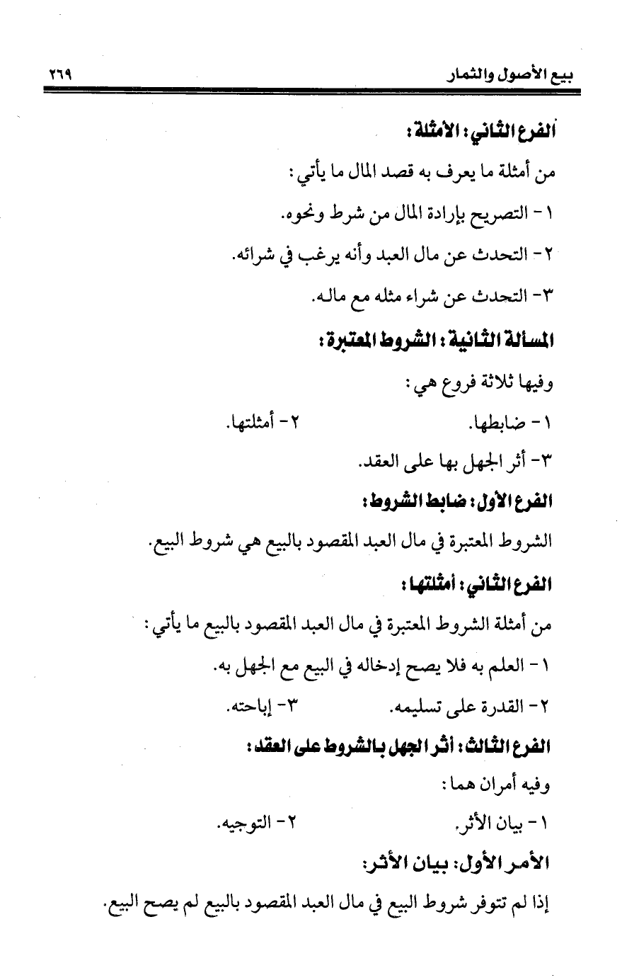 من أمثلة الشروط المعتبرة في مال العبد المقصود بالبيع ما يأتي: