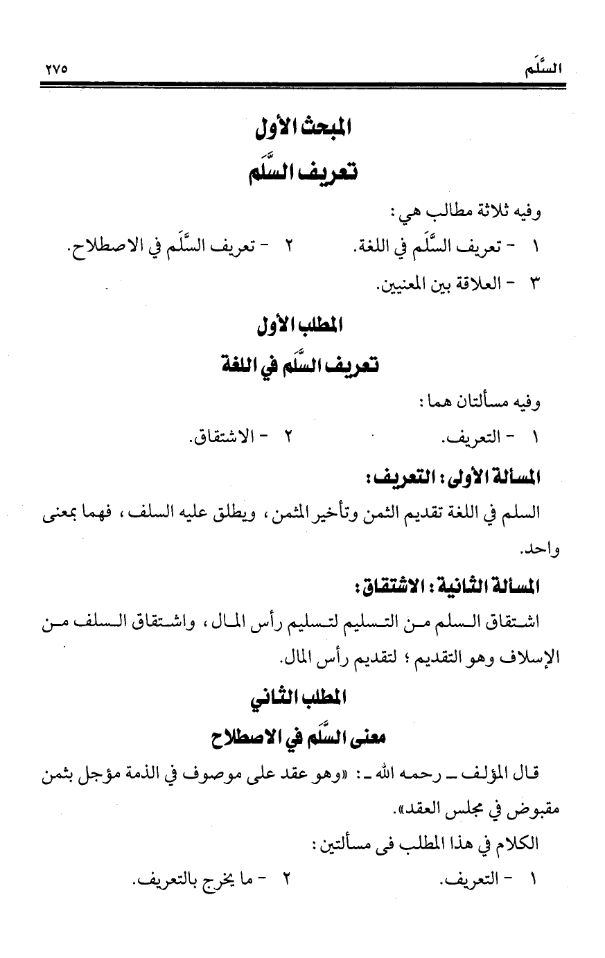 المطلب الثاني معنى السَّلَم في الاصطلاح