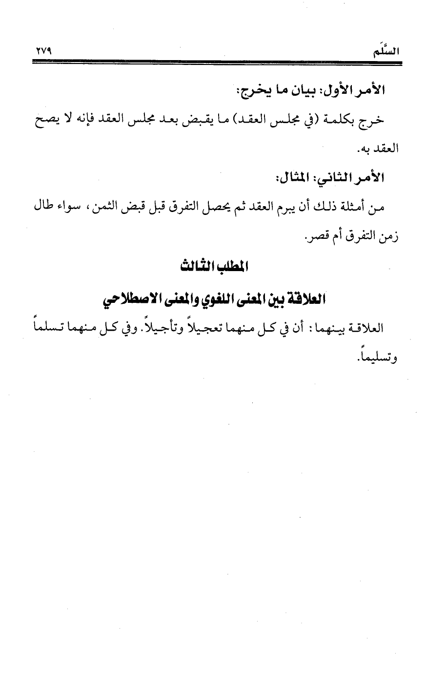 من أمثلة ذلك أن يبرم العقد ثم يحصل التفرق قبل قبض الثمن، سواء طال زمن التفرق أم قصر.