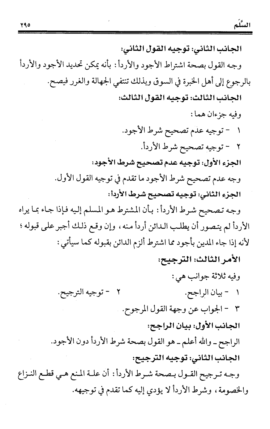 1 - توجيه عدم تصحيح شرط الأجود.