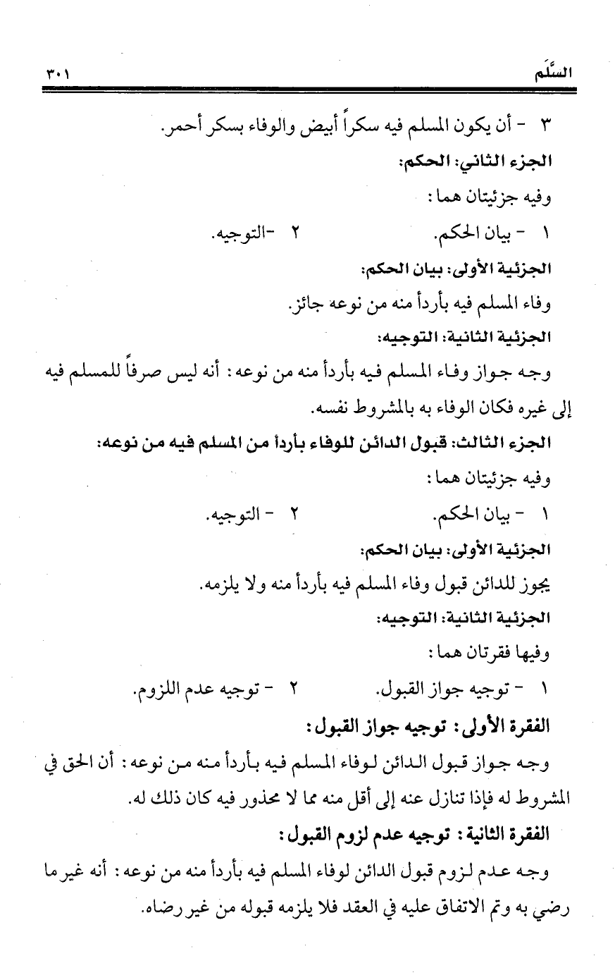 3 - أن يكون المسلم فيه سكراً أبيض والوفاء بسكر أحمر.