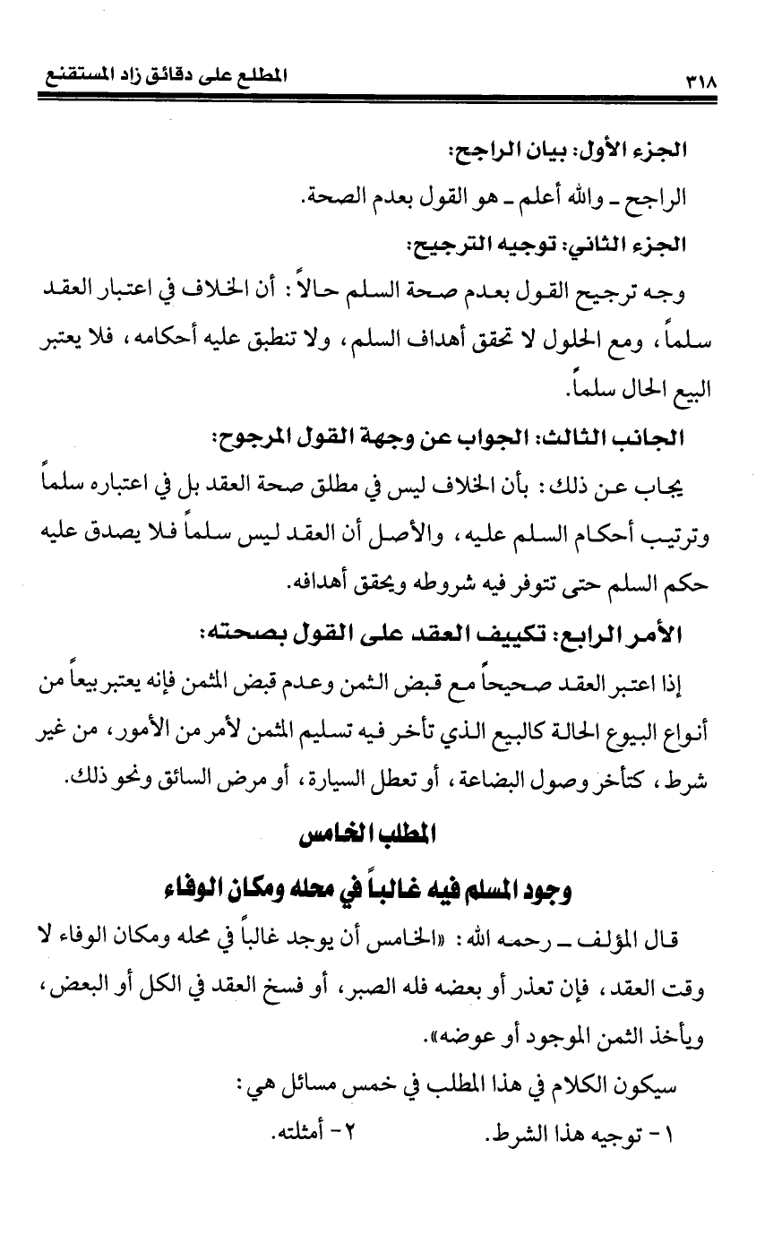 المطلب الخامس وجود المسلم فيه غالباً فى محله ومكان الوفاء