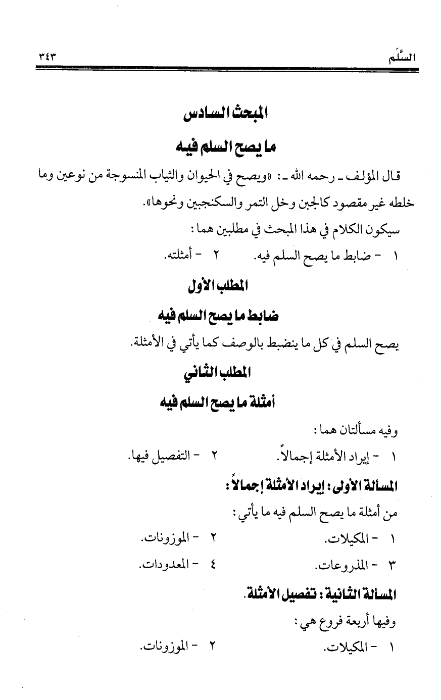 المبحث السادس (*) ما يصح السلم فيه