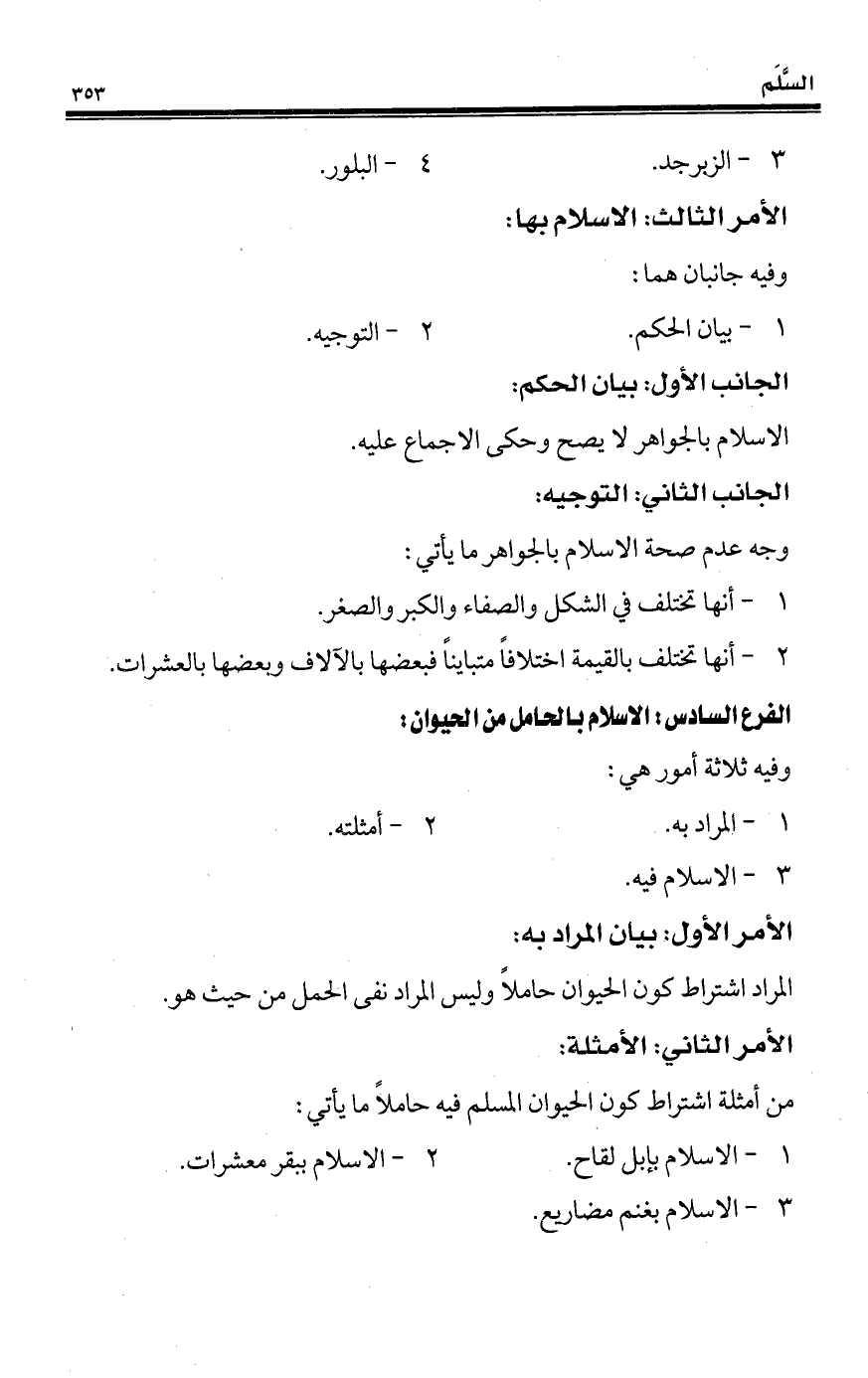 من أمثلة اشتراط كون الحيوان المسلم فيه حاملاً ما يأتي: