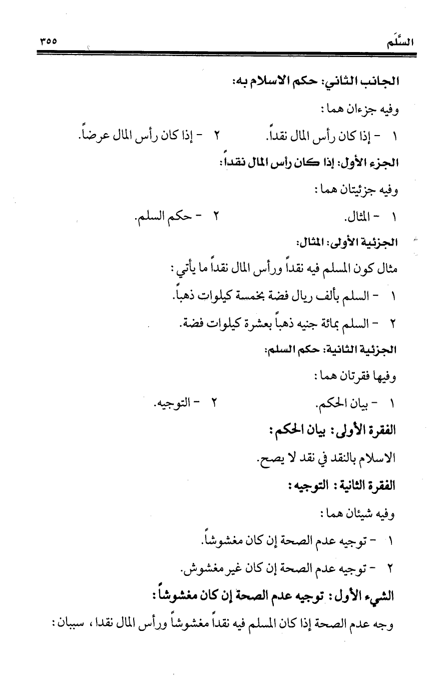 مثال كون المسلم فيه نقداً ورأس المال نقداً ما يأتي: