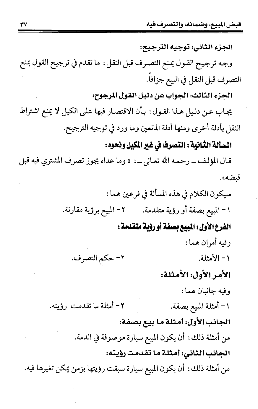 المسألة الثانية: التصرف في غير المكيل ونحوه: