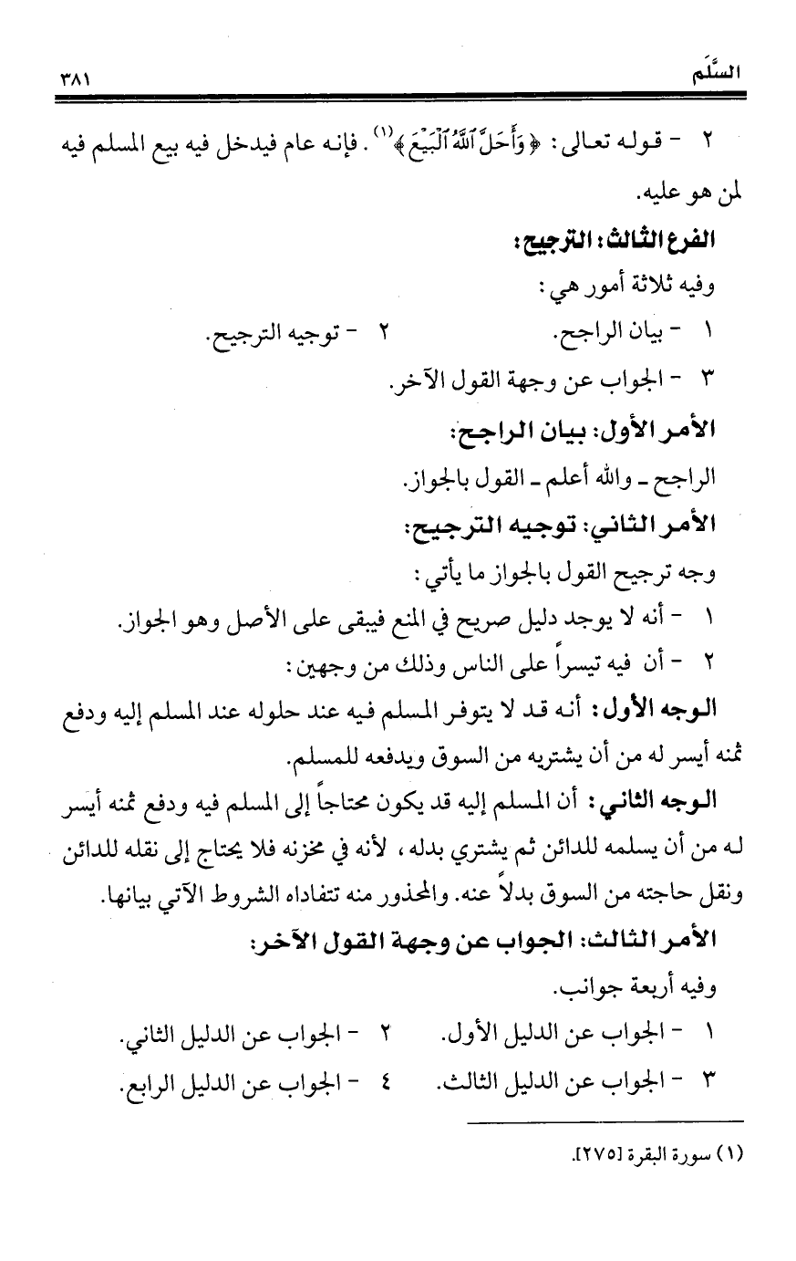 2 - قوله تعالى: {وَأَحَلَّ اللَّهُ الْبَيْعَ} (¬1). فإنه عام فيدخل فيه بيع المسلم فيه لمن هو عليه.