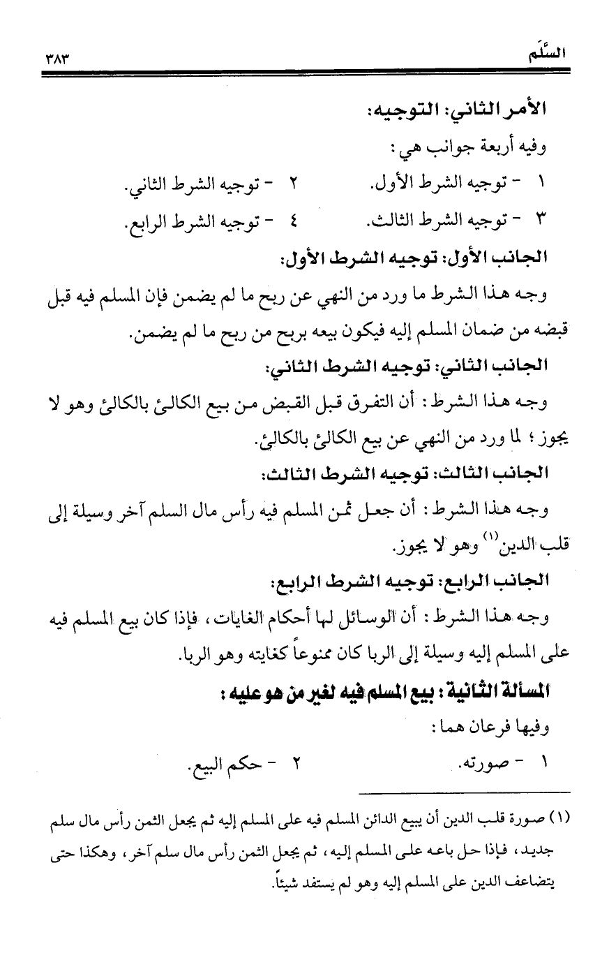 وجه، هذا الشرط: أن الوسائل لها أحكام الغايات، فإذا كان بيع المسلم فيه على المسلم إليه وسيلة إلى الربا كان ممنوعاً كغايته وهو الربا.